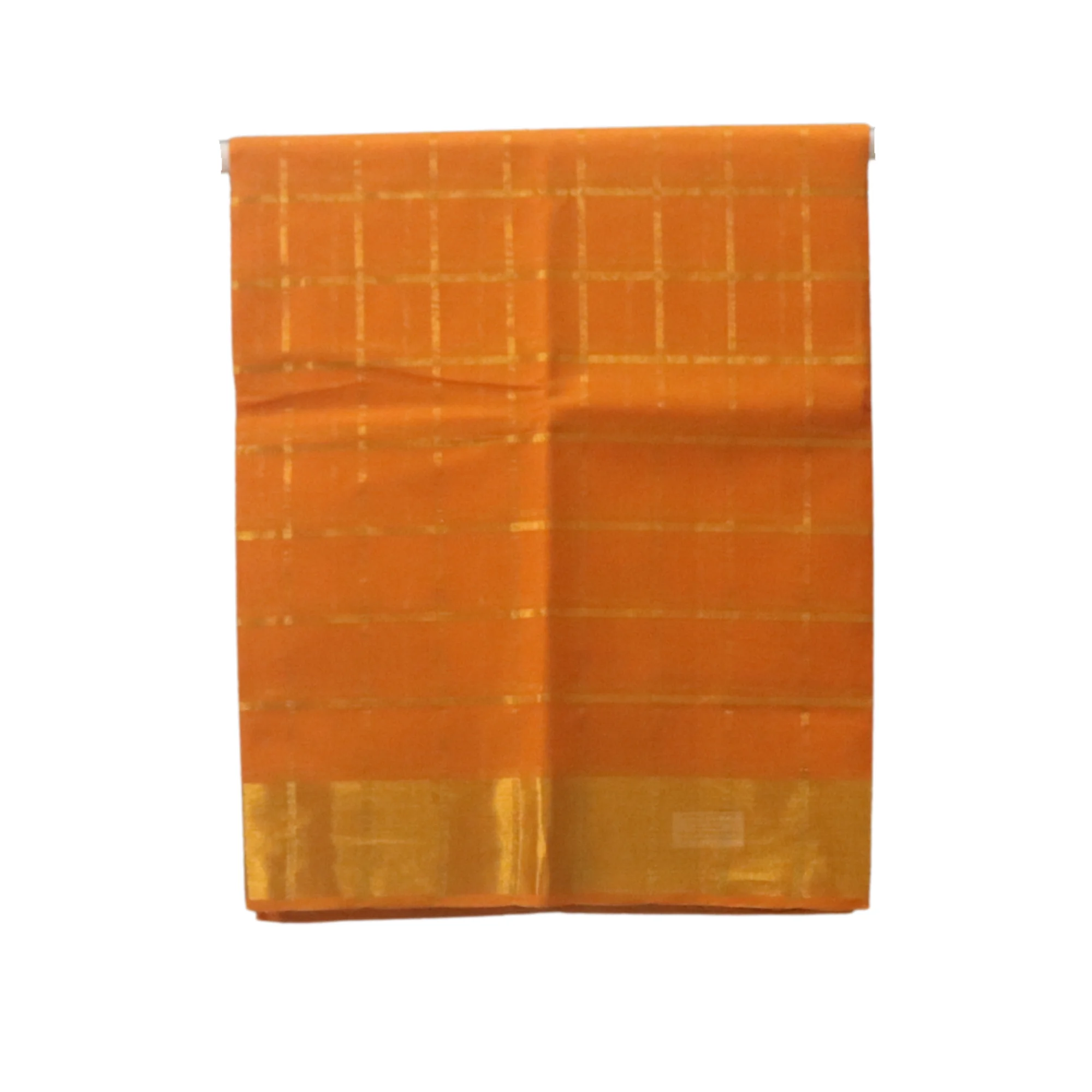 COTTON WORLD Venkatagiri Pure Cotton Woven Saree with Traditional Zari Checkered Pattern and Kadi Border(Orange)