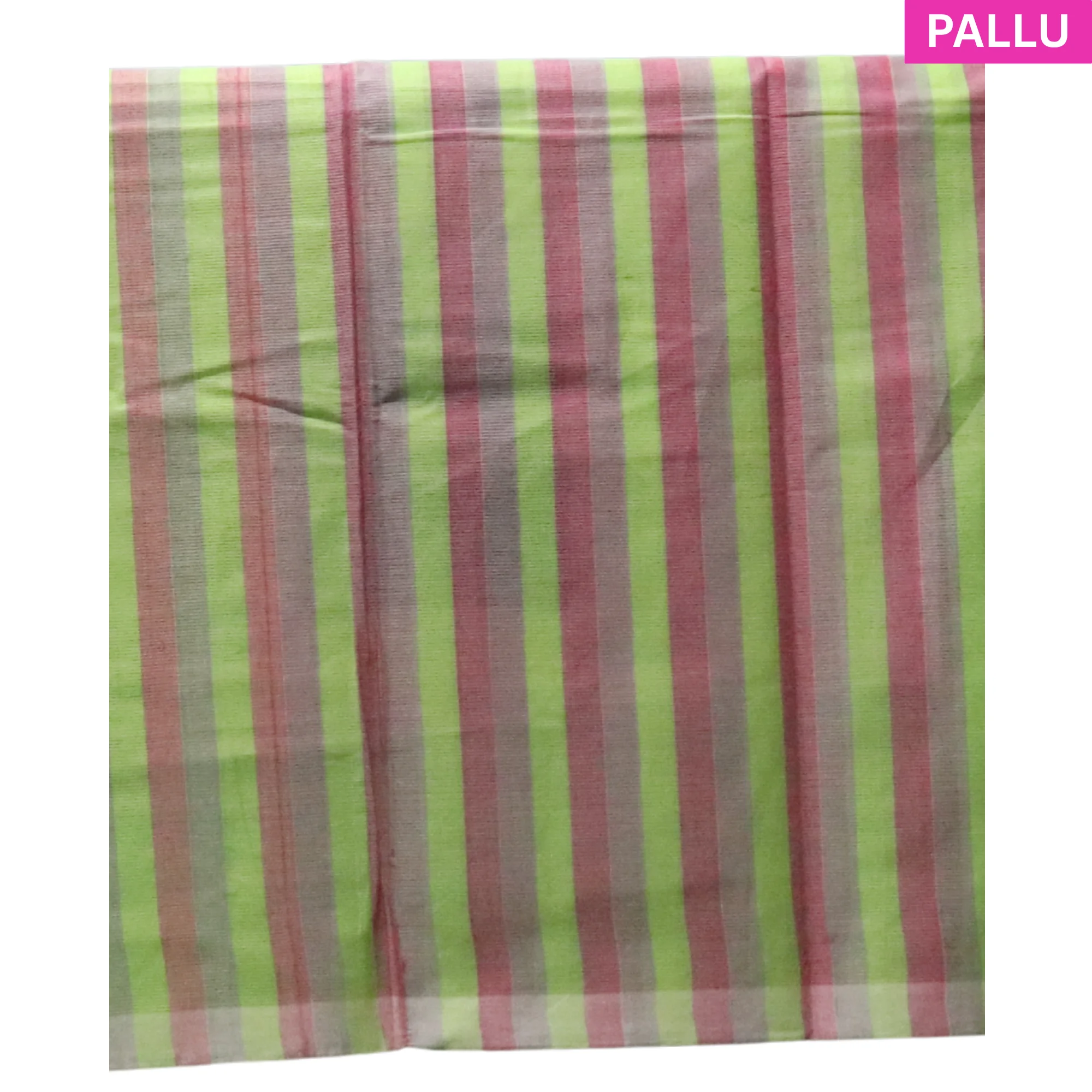 Crafted from premium cotton, it is lightweight, soft, and breathable — perfect for daily wear, festive occasions, temple visits, or summer gatherings. The fine vertical stripes lend it a graceful texture, while the contrast pallu and blouse bring a playful touch to the elegant green body.