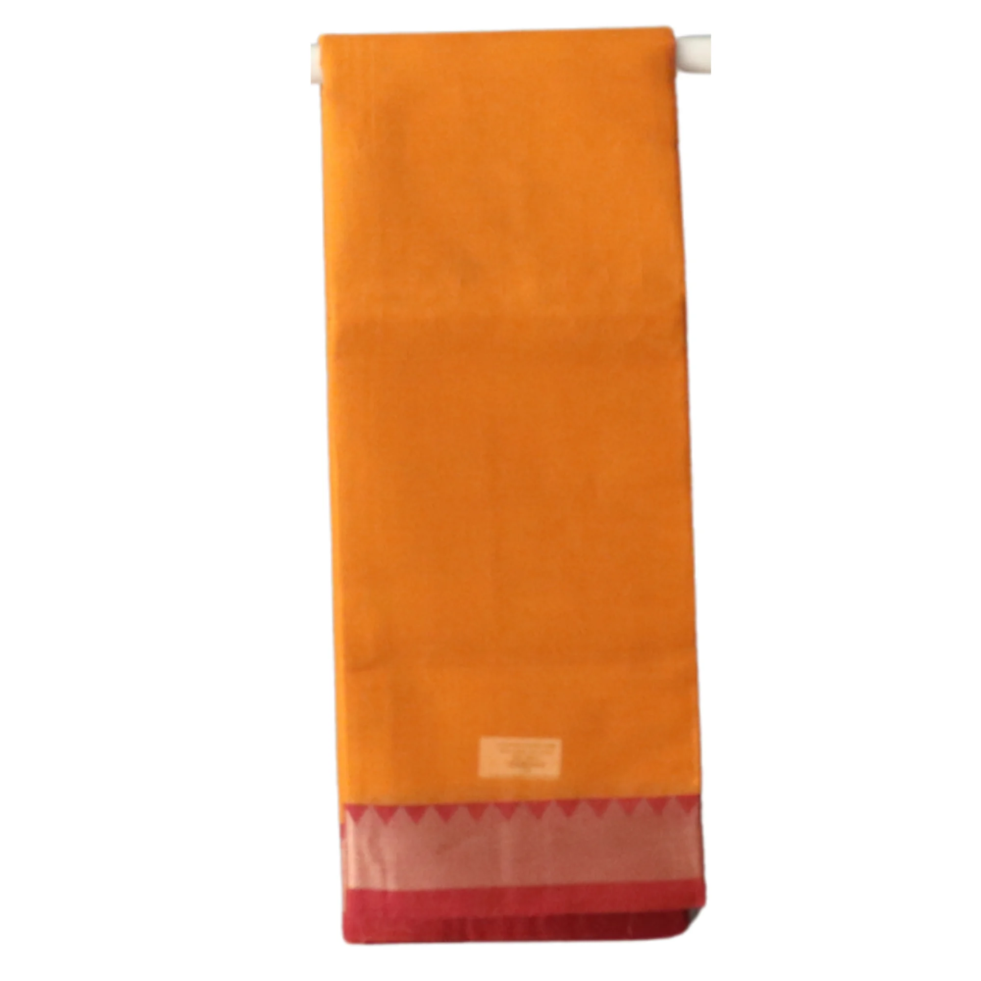 Step into grace and elegance with this Venkatagiri Pure Cotton Saree in a glowing Mustard Orange shade. The saree’s refined    small Border is beautifully enhanced with a Temple Design  and finished with showcasing traditional artistry with a modern touch. Handwoven by skilled weavers, this saree offers a lightweight, breathable texture — perfect for festive celebrations, traditional functions, and casual ethnic wear.