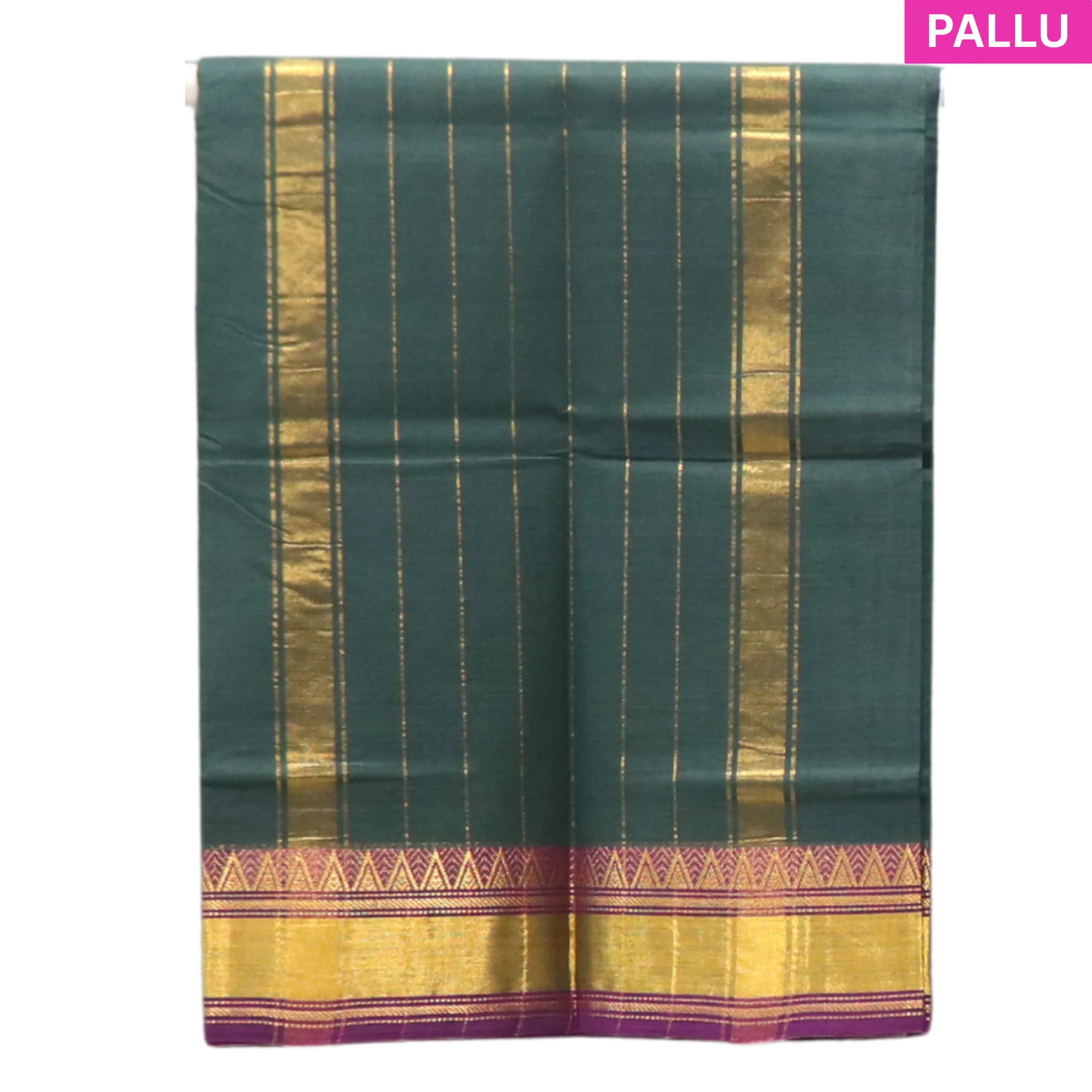 Step into grace and elegance with this Venkatagiri Pure Cotton Saree in a glowing Bootle Green shade. The saree’s refined Elegant Zari border is beautifully enhanced with a Temple Design and finished with showcasing traditional artistry with a modern touch. Handwoven by skilled weavers, this saree offers a lightweight, breathable texture — perfect for festive celebrations, traditional functions, and casual ethnic wear.