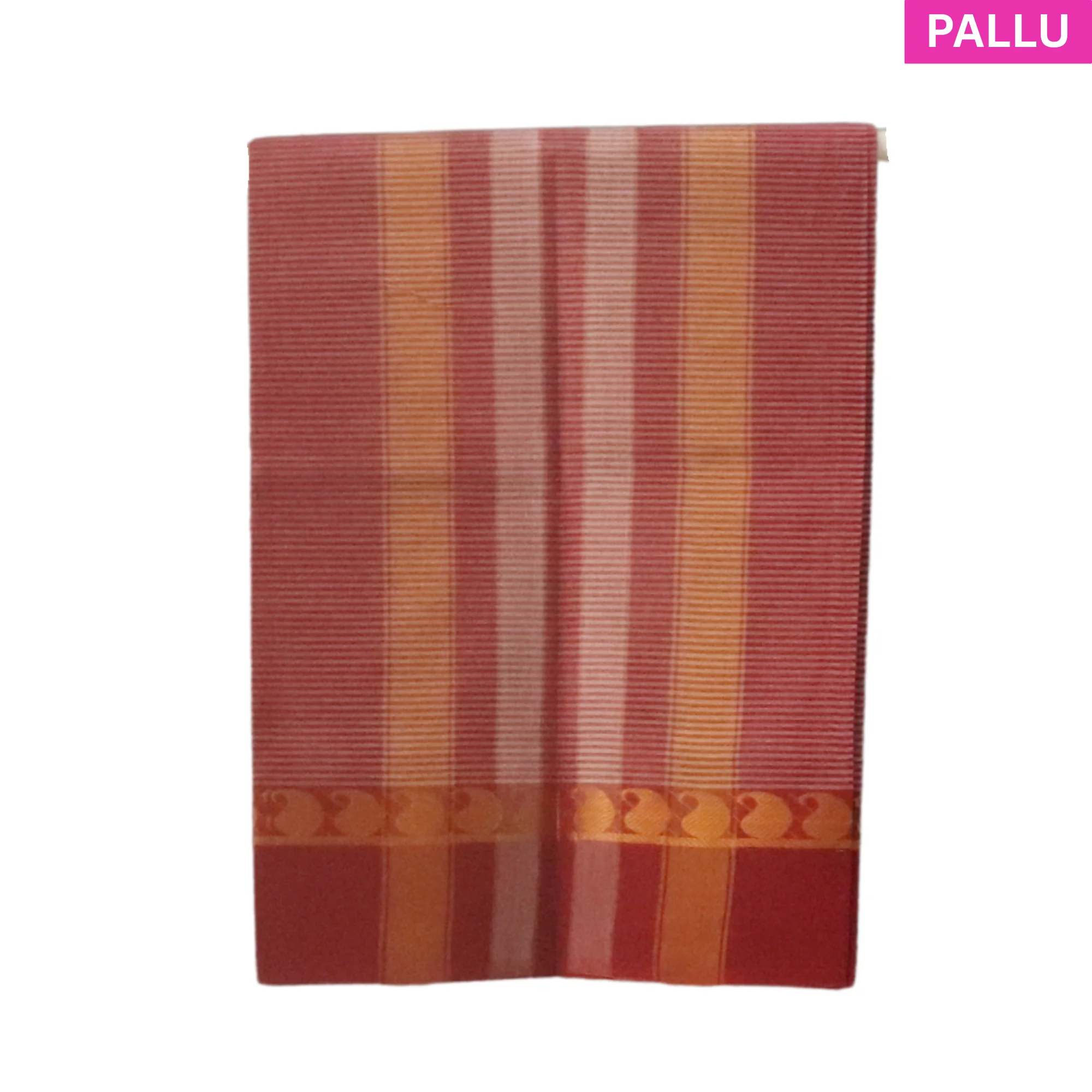 NB Cotton World Venkatagiri Pure Cotton Saree in Rust Red with Fine Striped Weave and Gold Peacock Zari Border (Without Blouse Piece)