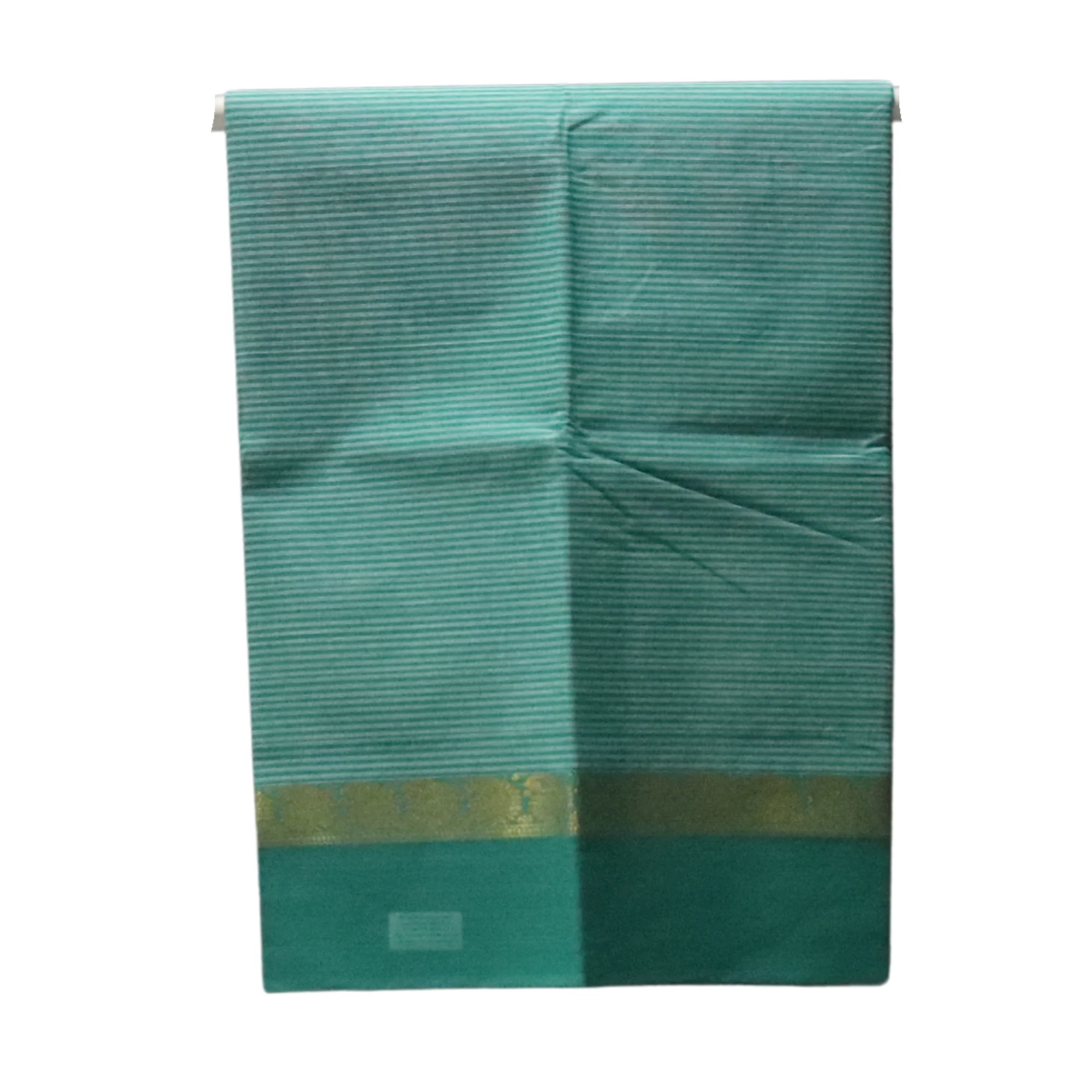 Grace your look with the refreshing charm of this Venkatagiri Pure Cotton Saree in a soothing sea green shade. The saree body features a delicate horizontal striped weave pattern, giving it a modern yet traditional appeal. The highlight is the gold floral zari border, intricately woven to add a touch of timeless elegance. Lightweight and breathable, this pure cotton saree drapes beautifully, making it ideal for festive wear, casual gatherings, and cultural occasions.