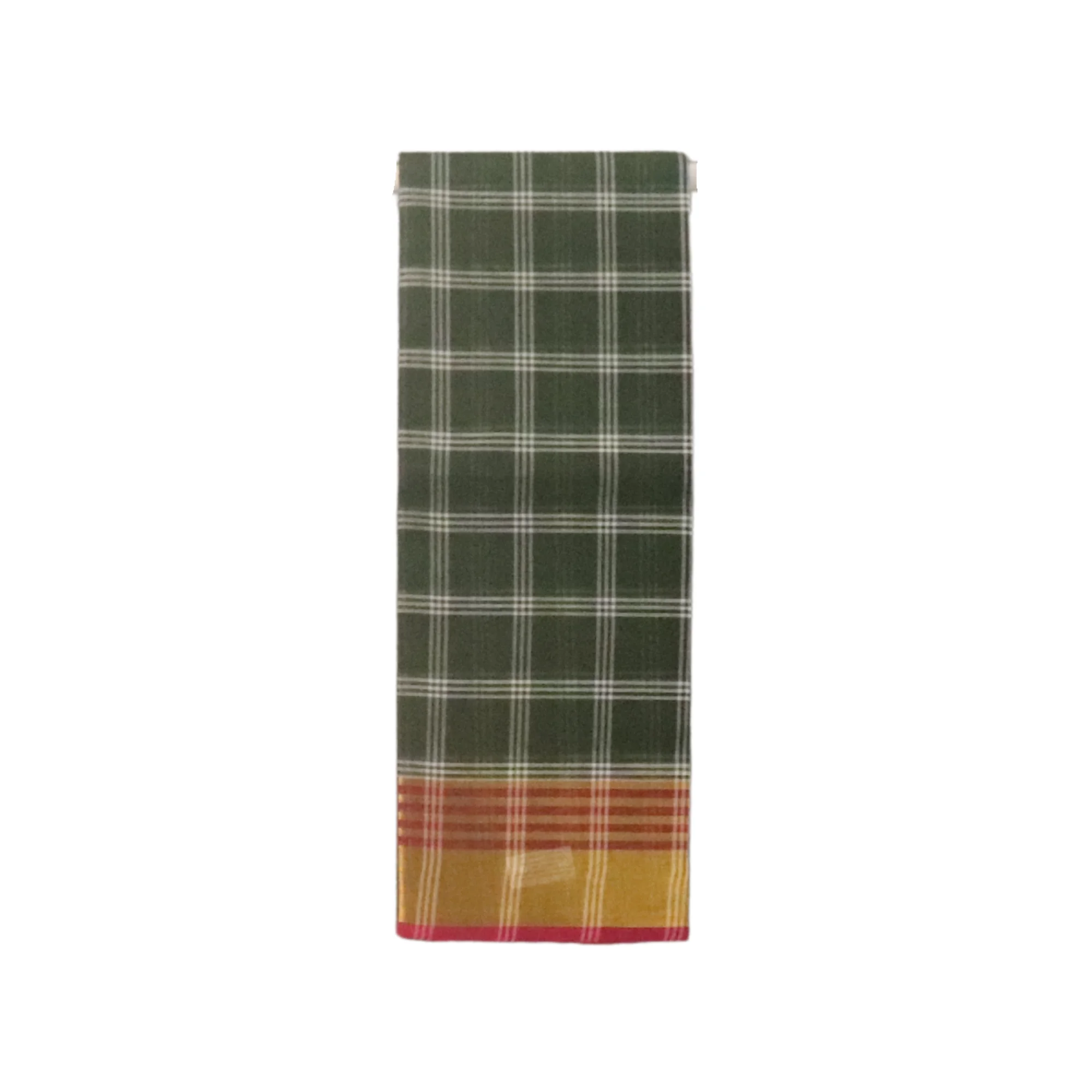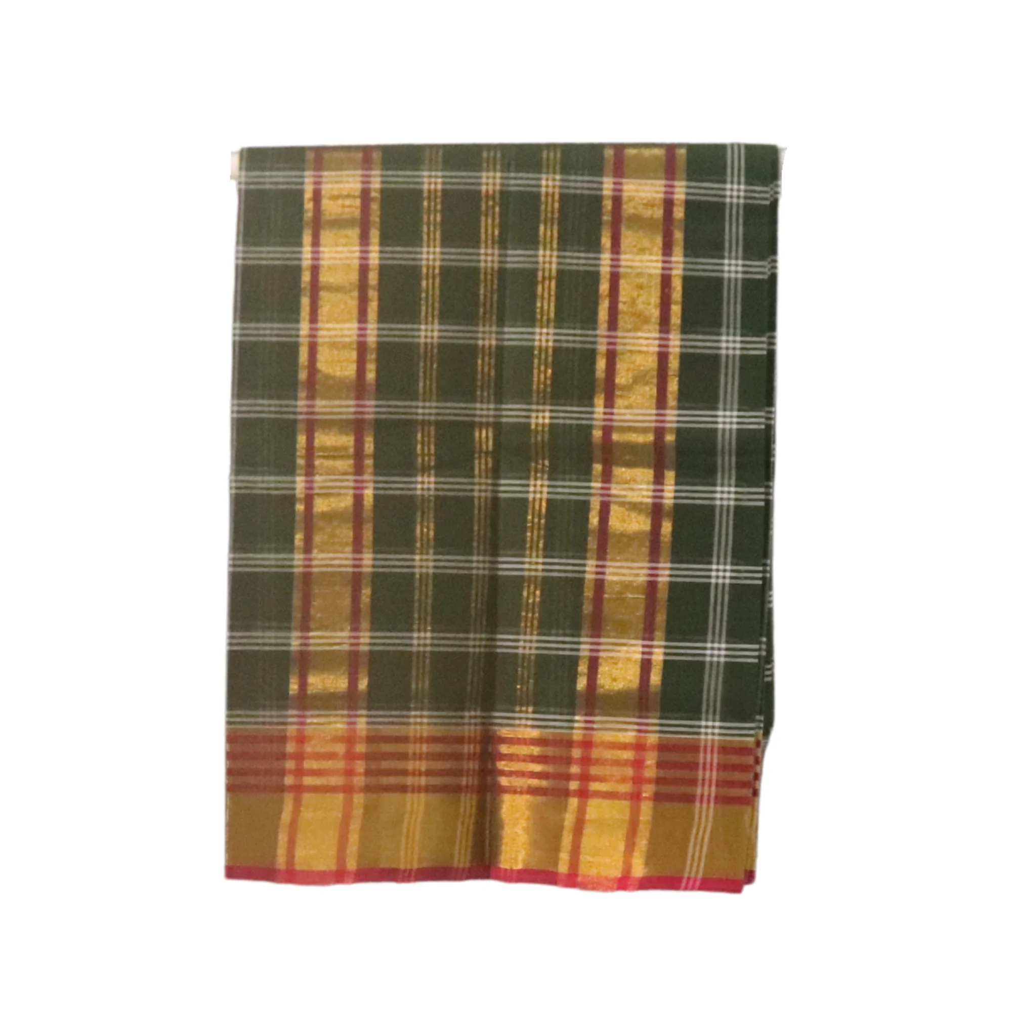 Traditional Venkatagiri Cotton Saree with Checked Design and Contrast Border – Without Blouse Piece (Olive Green )
