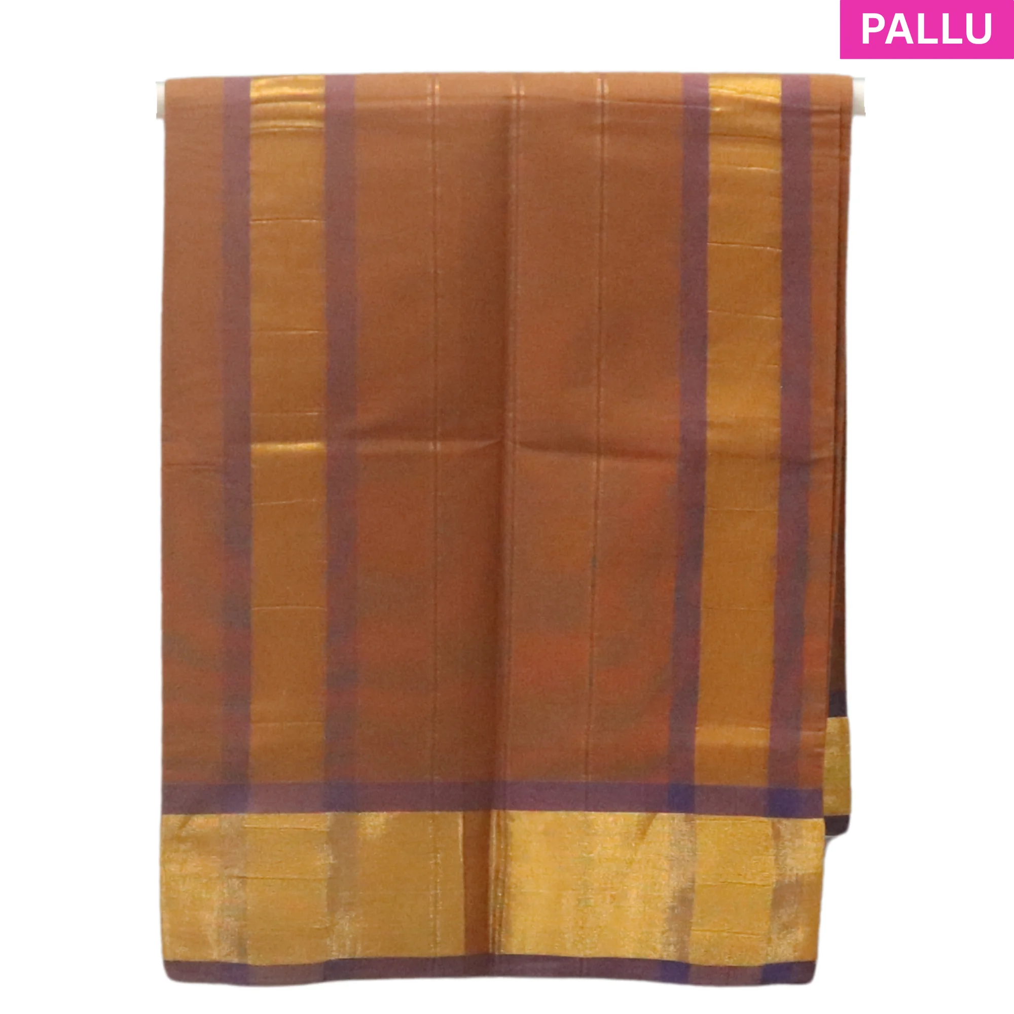 Venkatagiri Pure Cotton Saree for Women – Elegant Zari Border, Without Blouse (Copper Brown )