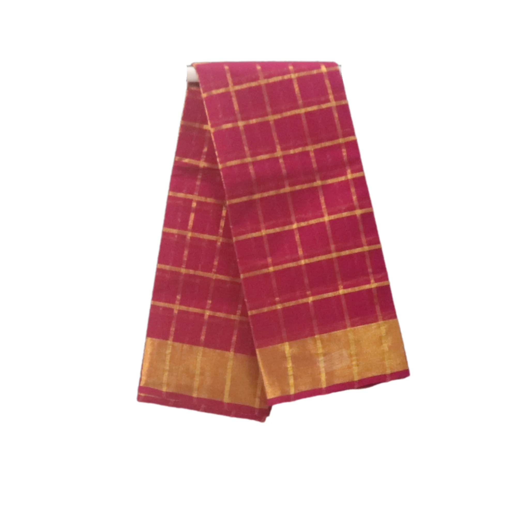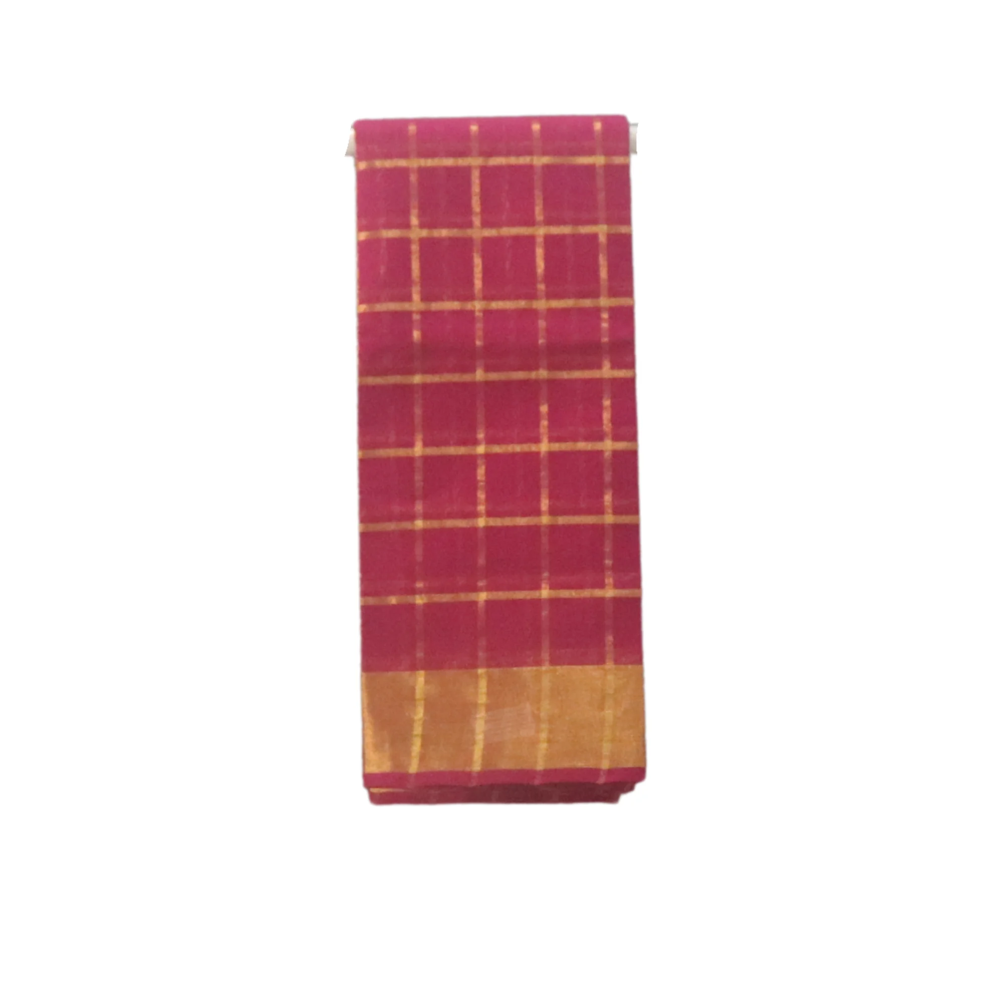 Venkatagiri Pure Cotton Woven Saree with Traditional Zari Checkered Pattern and Kadi Border (Magenta Pink)