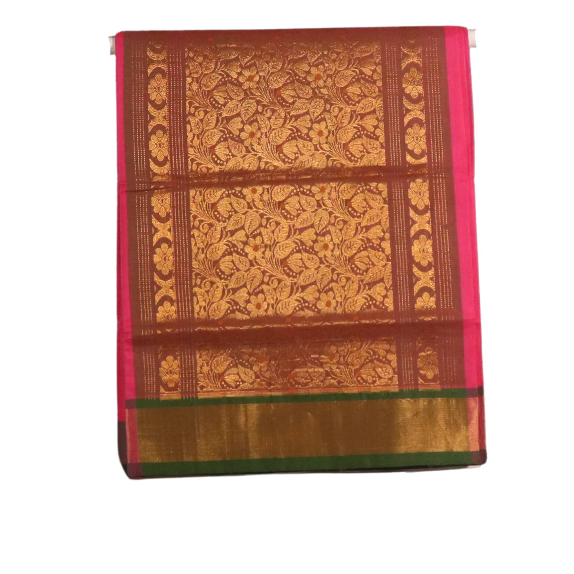 Color: Bright Pink with Green and Gold Zari Buttas