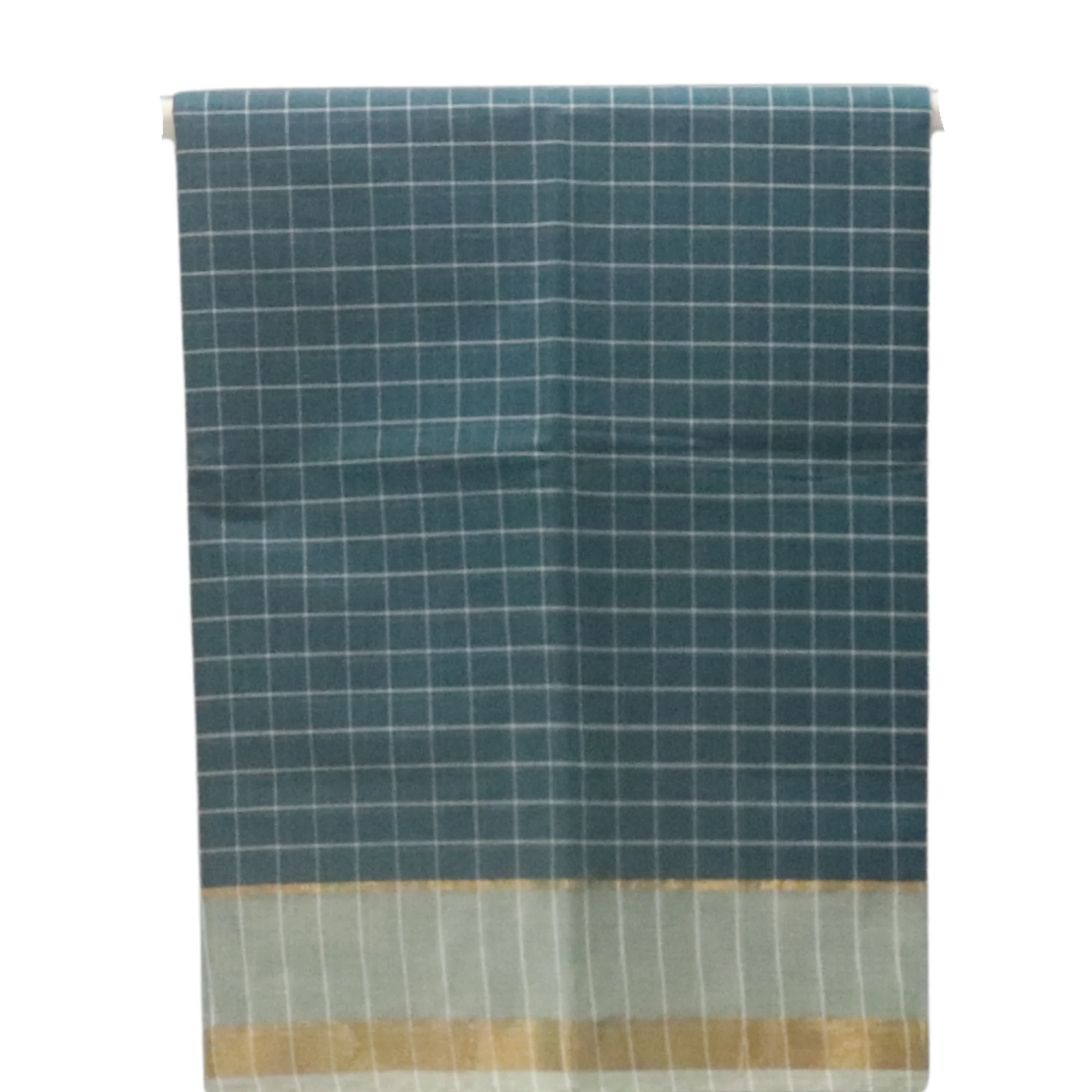 Step into grace and elegance with this Venkatagiri Pure Cotton Saree in a glowing dark greenish shade. The saree’s refined Golden Zari border is beautifully enhanced with a dark greenish Checkered and finished with gold zari edging, showcasing traditional artistry with a modern touch. Handwoven by skilled weavers, this saree offers a lightweight, breathable texture — perfect for festive celebrations, traditional functions, and casual ethnic wear.
